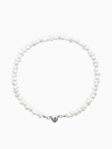 Колье жемчужное «Сердце» 35 см, белое в серебре