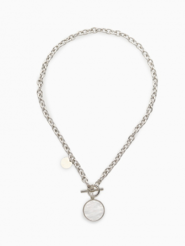 Кулон «Цепь» перламутровый медальон, бежевый в серебре, 42 см