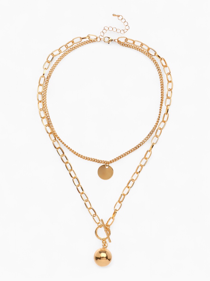 Кулон представляет собой изящную конструкцию из двух слоев цепочек, каждая из которых выполнена в золотистом цвете. Центральным элементом выступает небольшой шарик и медальон, аккуратно закрепленный на основной цепочке. Легкость и компактность украшения позволят комфортно носить его ежедневно, добавляя нотку эксклюзивности и грациозности к привычным образам.