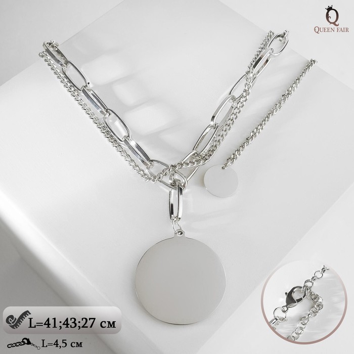 Кулон «Цепь» звенья, 2 нити, цвет серебро, 42 см