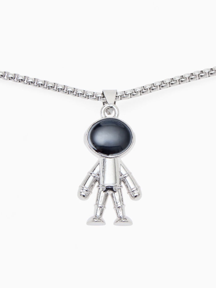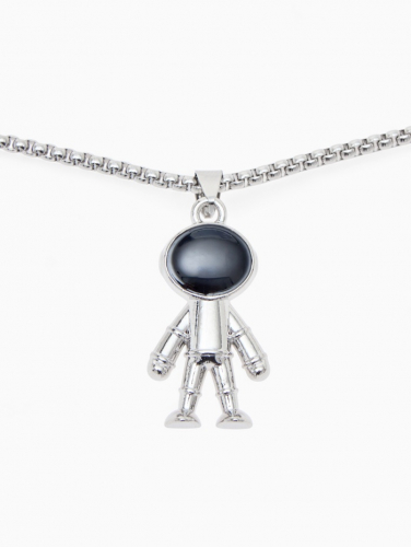 Кулон «Космонавт» человечек, чёрный в серебре, 70 см