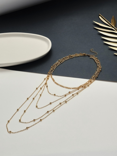 Кулон на цепочке «Цепь», классика с бусинками, многоярусный, цвет золото