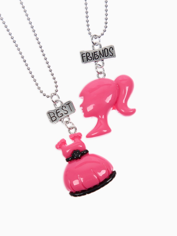 Кулоны парные «Кукла и платье», 40 см, цвет розовый в серебре