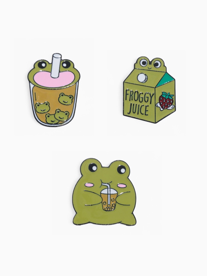 Откройте для себя мир веселья и оригинальности с набором значков «Лягушачьи напитки». Эти яркие аксессуары в зеленом цвете с изображениями забавных лягушек добавят нотку игривости в ваш стиль и станут отличным способом выразить свою индивидуальность.