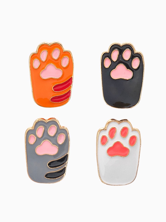 Набор значков (4 шт.) «Лапки» кошачьи, цветной в золоте