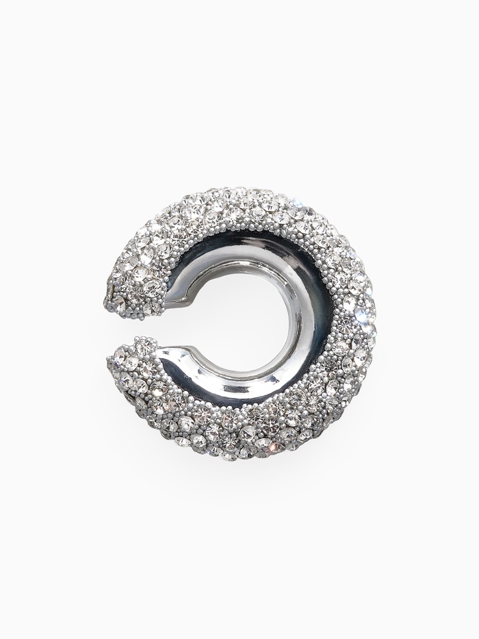 Серьга кафф «Бублик», малые стразы, цвет белые в серебре