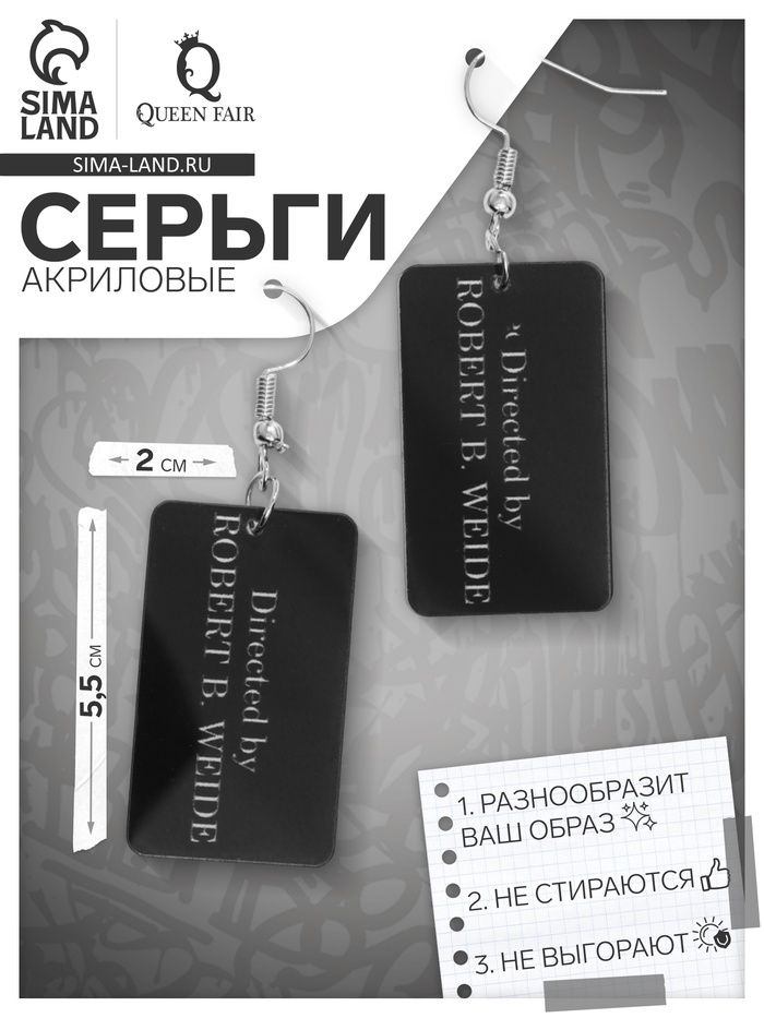 Стильные серьги с акриловой вставкой в чёрно-белой гамме — идеальный выбор для тех, кто ценит лаконичность и выразительность в аксессуарах. Длина 5,5 см подчёркивает их заметность, а надпись «Directed by» добавляет современный и немного дерзкий акцент, который гармонично впишется в повседневный и праздничный образ.
