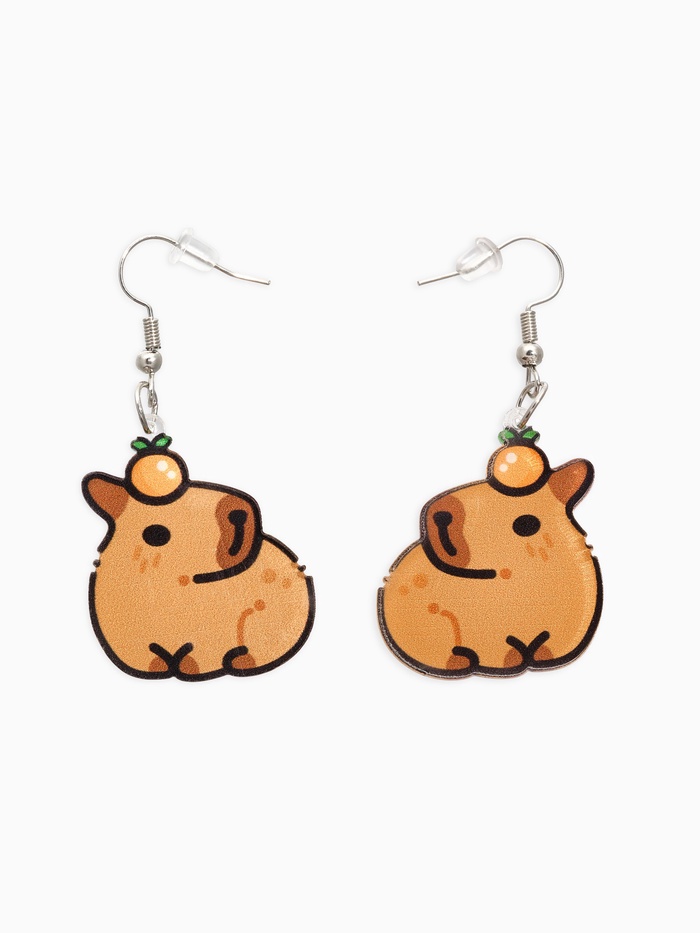 Ищете необычный и обаятельный аксессуар для юных модниц? Обратите внимание на очаровательные акриловые серьги с изображением добродушной капибары. Выполненные в теплом коричневом цвете, они добавят нотку юмора и позитива в повседневный образ вашего ребенка.