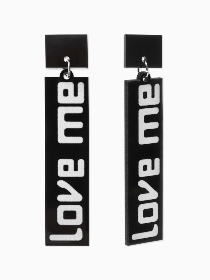 Чёрно-белые серьги с прямоугольными акриловыми вставками и надписью «LOVE ME» — это современный аксессуар, который гармонично сочетает в себе стиль и выразительность. Их длина 5 см делает украшение заметным, но при этом лёгким и удобным для ежедневного ношения.
