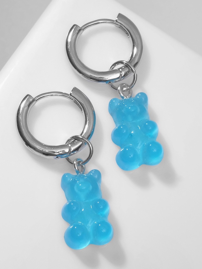 Голубые серьги-трансформеры с милыми мармеладными мишками станут ярким акцентом в вашем образе и подчеркнут игривый характер. Длина 4 см и лёгкий пластик в сочетании с серебристой металлической основой делают украшение комфортным для ежедневного ношения, а застёжка-конго обеспечивает надёжную фиксацию и удобство.