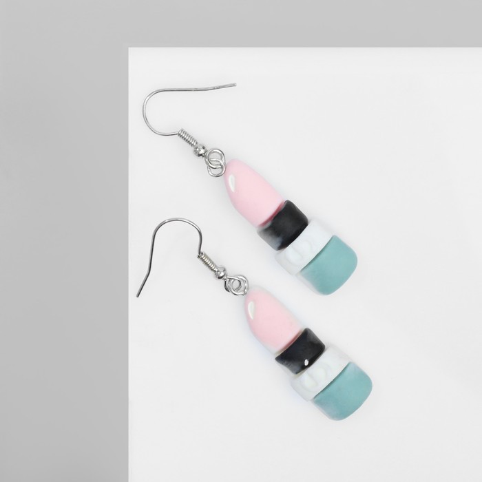 Яркие серьги с разноцветными акцентами в форме помады — это смелое и стильное украшение, которое привнесёт в образ игривость и настроение праздника. Длина 5,5 см позволяет серьгам стать заметным аксессуаром, не перегружая при этом общий вид, а серебристая фурнитура придаёт изделию современный и изящный блеск.