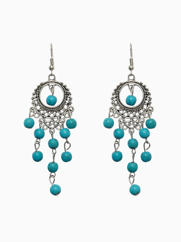 Изготовленные из качественного металла, серьги обладают прочностью и долговечностью. Замок-петля обеспечивает надежную фиксацию, что делает их удобными для повседневного ношения или особых случаев. Искусственные вставки под натуральный камень придают серьгам эффект настоящей бирюзы, добавляя нотку роскоши и утончённости.