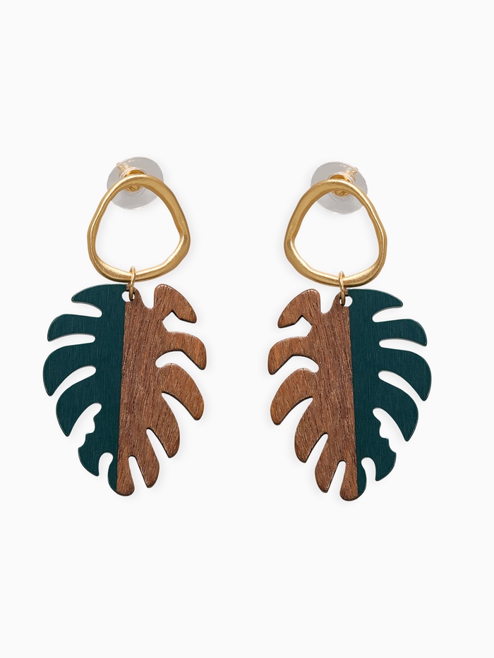 Серьги из дерева «Ваканда» монстера, цвет зелёно-коричневый в золоте