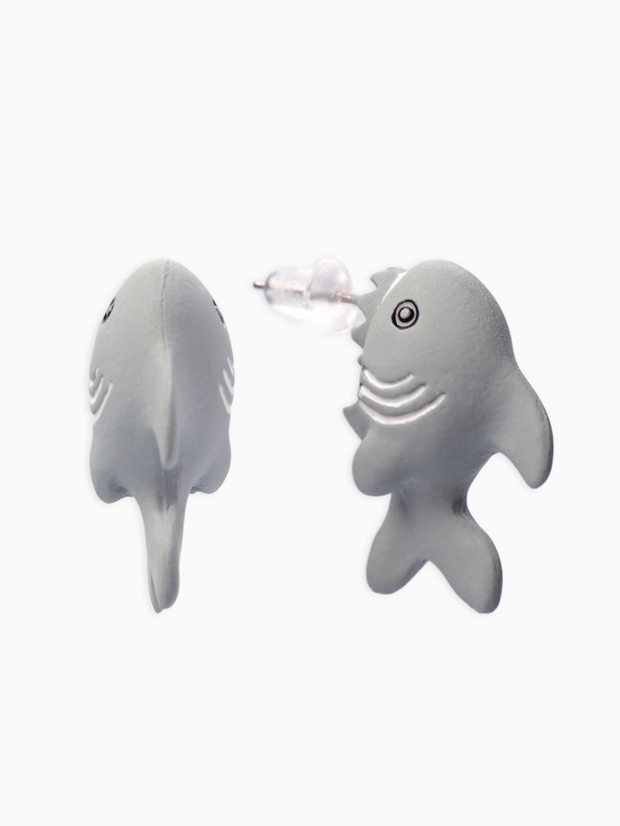 Серьги из полимерной глины «Акула», цвет серый