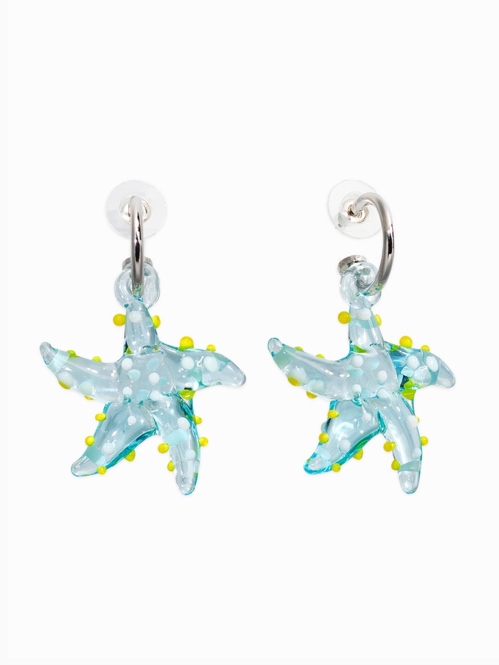 Серьги из стекла «Море. Звезда», голубые в серебре