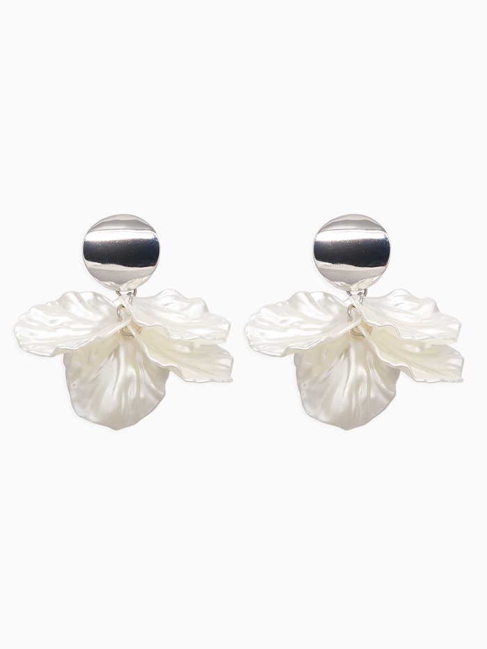 Серьги клипсы для ушей QF «Ветерок», белые в серебре