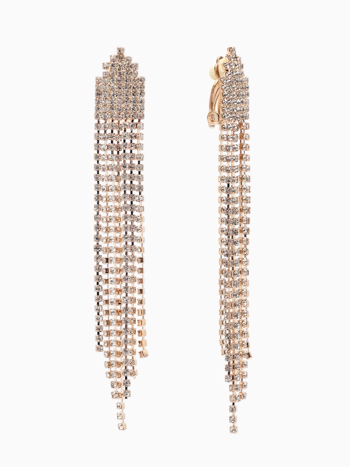 Серьги клипсы для ушей висячие со стразами QF «Вечеринка», белые в золоте