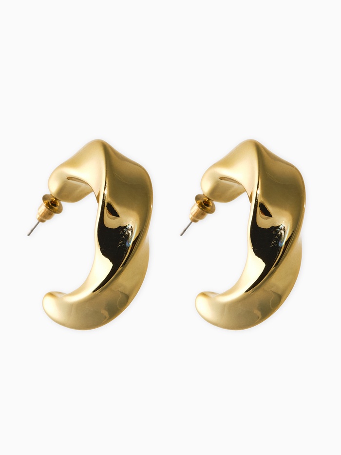 Золотое кружево на ваших ушах Женские золотые сережки в виде закрученных колец – элегантный аксессуар, созданный для тех, кто любит простую и стильную классику. Запоминающаяся спиральная форма притягивает взгляды, а тёплый оттенок золота приносит нотку солнца в любой образ.