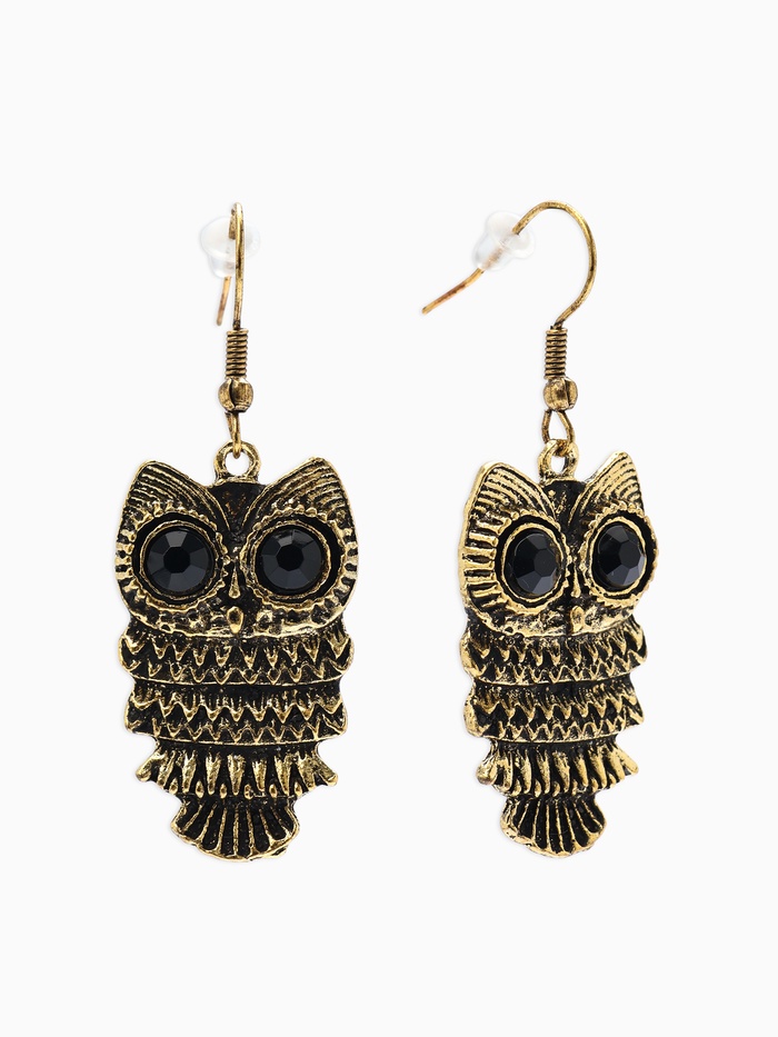 Серьги металл Art совушка, цвет чёрный в чернёном золоте