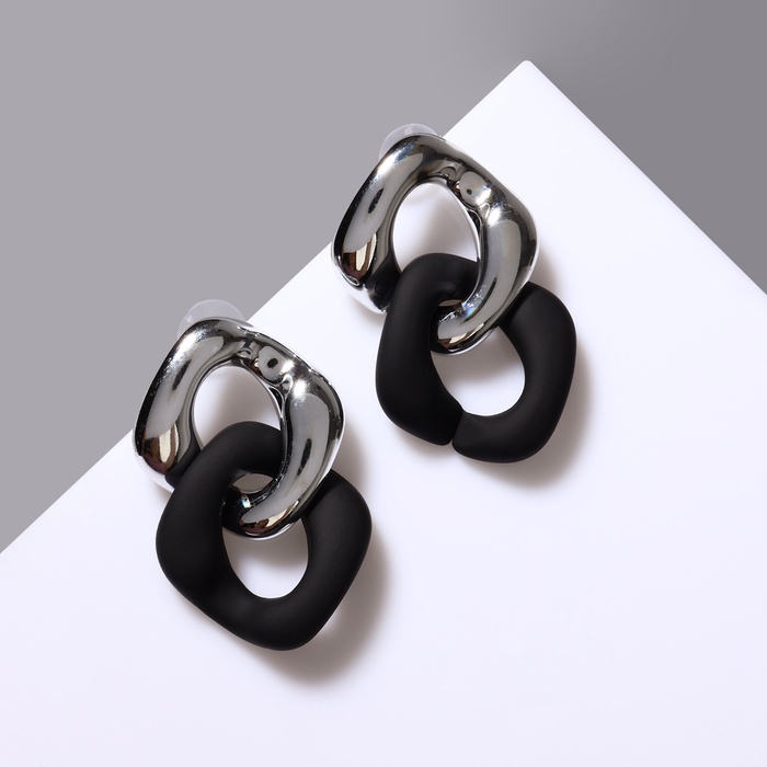 Серьги металл «Цепь» диагональ, 2 полых ромба, цвет серебристо-чёрный
