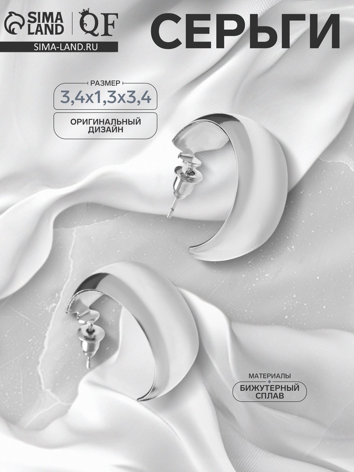 Серьги металл «Полумесяц», цвет серебро