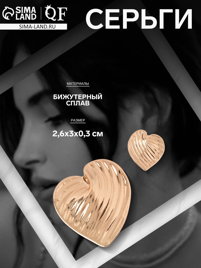 Серьги металл «Сердца», цвет золото