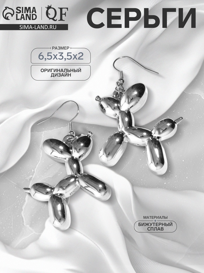 Серьги металл «Собачка» из воздушного шара, цвет серебро