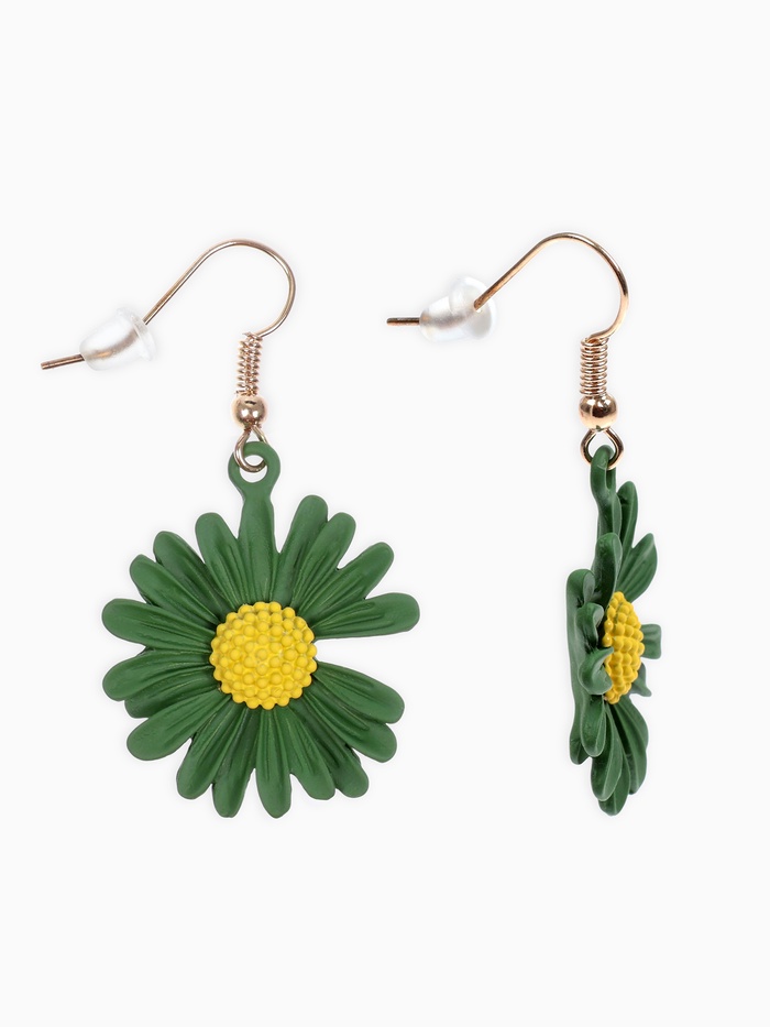 Серьги металл «Яркость» ромашки, цвет жёлто-зелёный