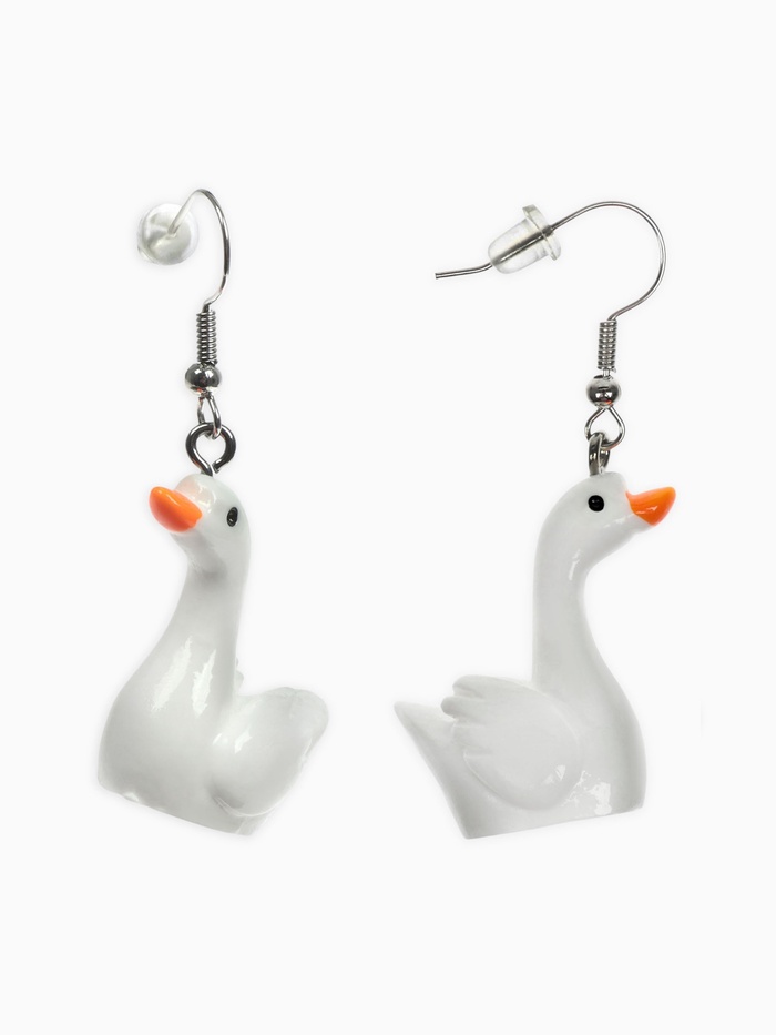 Небольшие серьги с изображением гусей привносят в образ лёгкость и игривость, подчёркивая индивидуальность и любовь к природе. Бело-оранжевая цветовая гамма в сочетании с серебристой фурнитурой создаёт свежий и современный акцент, который легко впишется как в повседневный, так и в праздничный наряд.