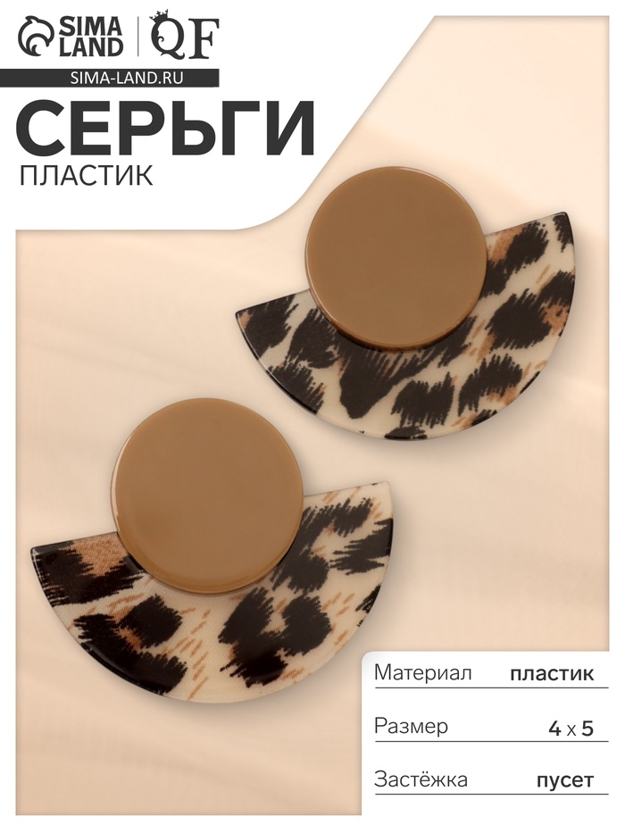 Серьги пластик «Танзания» полукруг бежевый леопард, цветные