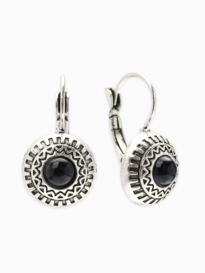 Серьги под натуральный камень «Этника» круг в узорах, цвет чёрный в чернёном серебре