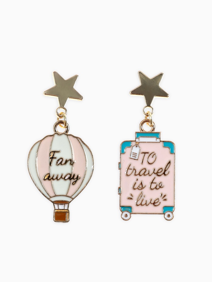 Серьги с эмалью «Путешествие» воздушный шар, цвет розовый в золоте