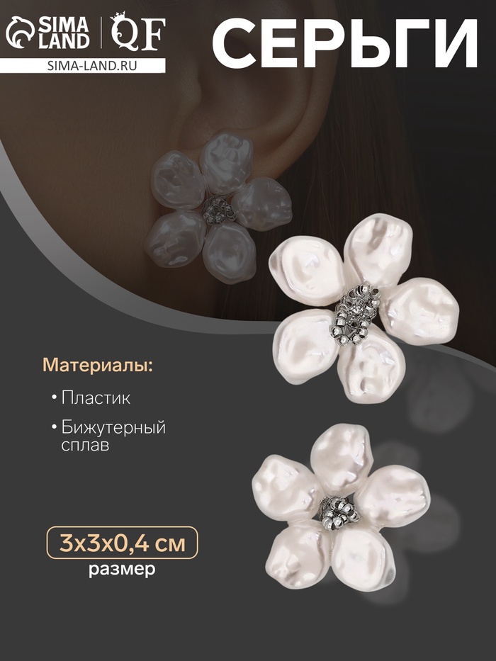 Серьги с жемчугом «Эксклюзив» цветок, цвет серебро