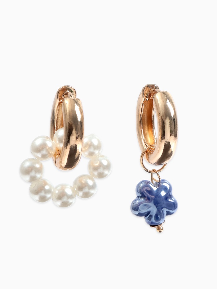 Серьги со съёмным элементом «Трансформер» цветок, цвет бело-синий в золоте