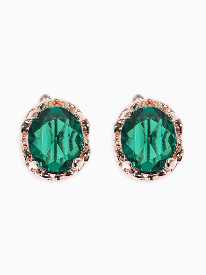 Серьги со стразами «Эдель» овал классика, цвет изумрудный в розовом золоте