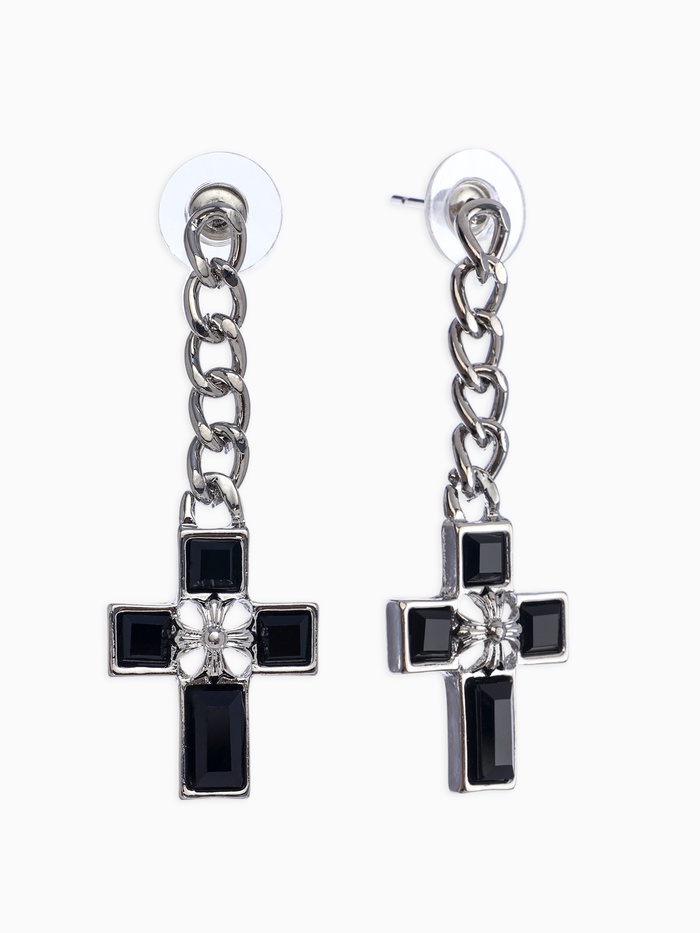 Эффектные серьги с подвесками в виде крестиков создают выразительный образ, сочетая в себе современную эстетику и изысканную игру контрастов. Чёрно-белое сочетание страз на серебристой основе придаёт украшению особую глубину и динамичность, что делает его отличным выбором для тех, кто ценит стиль с характером.