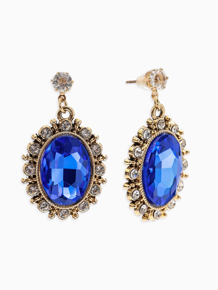 Серьги со стразами «Овал грань», синие в золоте