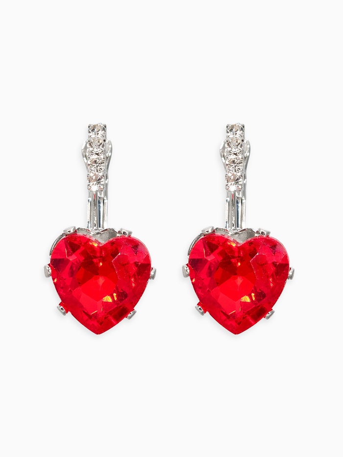 Серьги со стразами «Сердце» мерцание, бело-красные в серебре