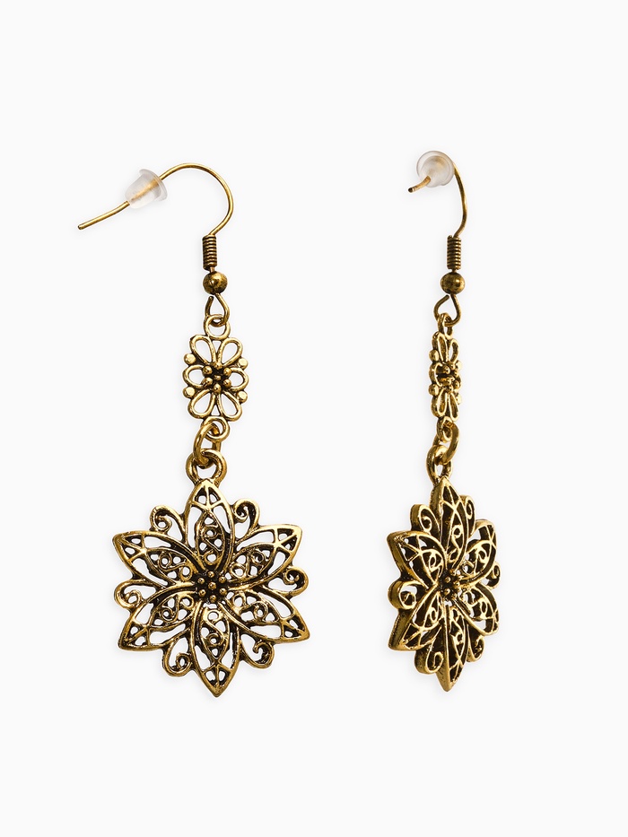 Серьги висячие «Аутентичный цветок», цвет чернёное золото