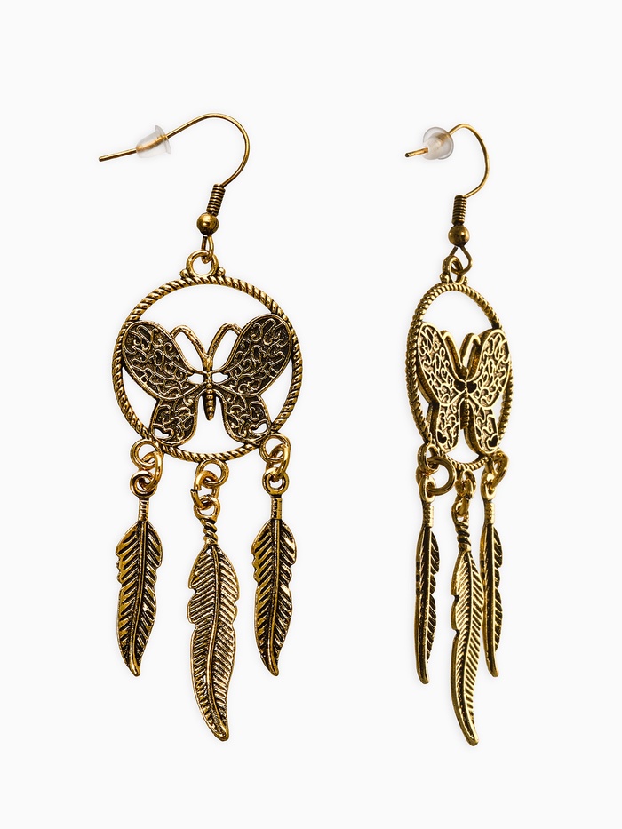 Серьги висячие «Бабочка. Ловец снов», метал, цвет чернёное золото