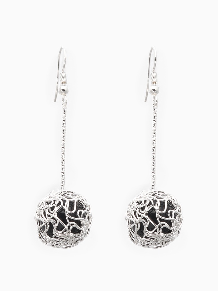 Серьги висячие «Шар плетёный», цвет чёрный в серебре, 6.5 см