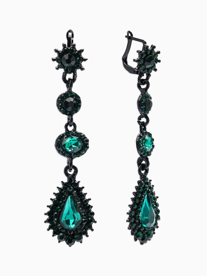 Серьги висячие со стразами «Вечерние» мадам, цвет изумрудный в чёрном металле, 7 см
