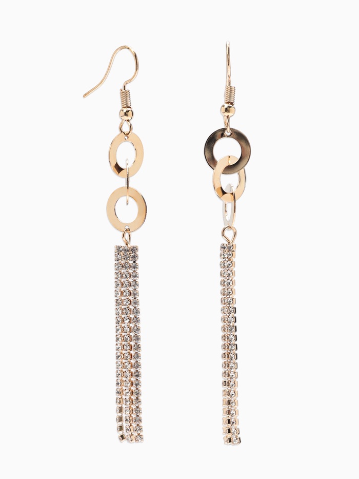 Серьги висячие со стразами «Вечерние» нить и кольцо, цвет белый в золоте,10 см