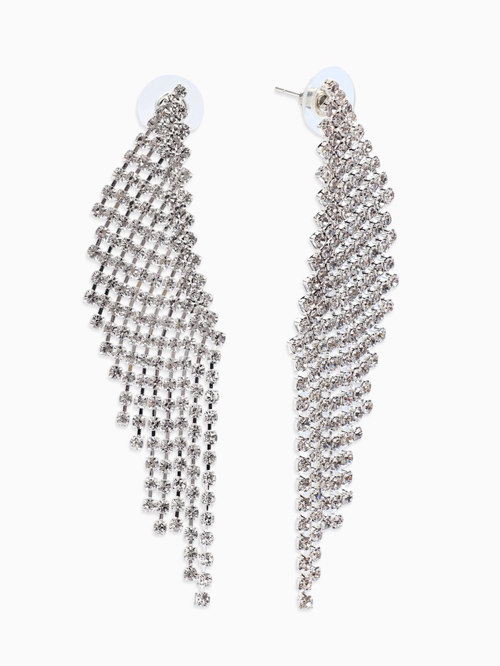 Серьги висячие со стразами «Вечное сияние» водопад, белые в серебре