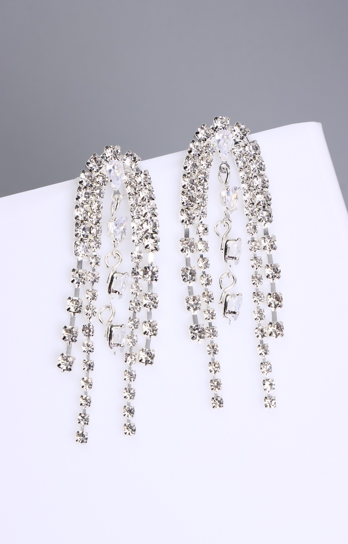 Погрузитесь в атмосферу элегантности и шика с изумительными висячими серьгами, украшенными стразами, которые напоминают сверкающий водопад. Эти изящные серьги, созданные в тонком сочетании белого цвета с серебряной фурнитурой, станут идеальным акцентом для вашего образа, придавая ему неповторимый шарм.