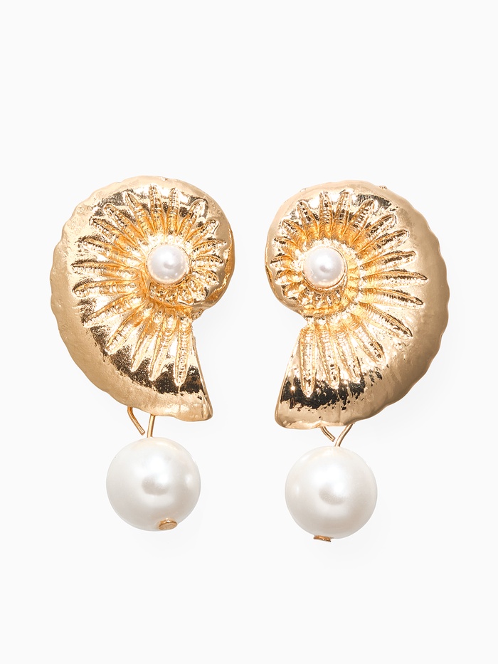 Серьги жемчуг «Ракушка», белые в золоте