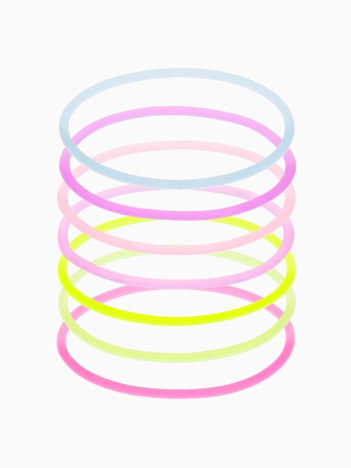 Силиконовый браслет в наборе из 10 штук – это яркое и многофункциональное украшение, которое идеально подходит для создания уникальных образов. Каждое украшение в наборе выполнено в различных оттенках, что позволяет легко сочетать их и подбирать к любому наряду. Эти браслеты светятся в темноте, добавляя интересный эффект и делая вас заметными в любом окружении. С диаметром 5,5 см, браслеты тянутся и подходят для любой руки, обеспечивая комфортное ношение.
