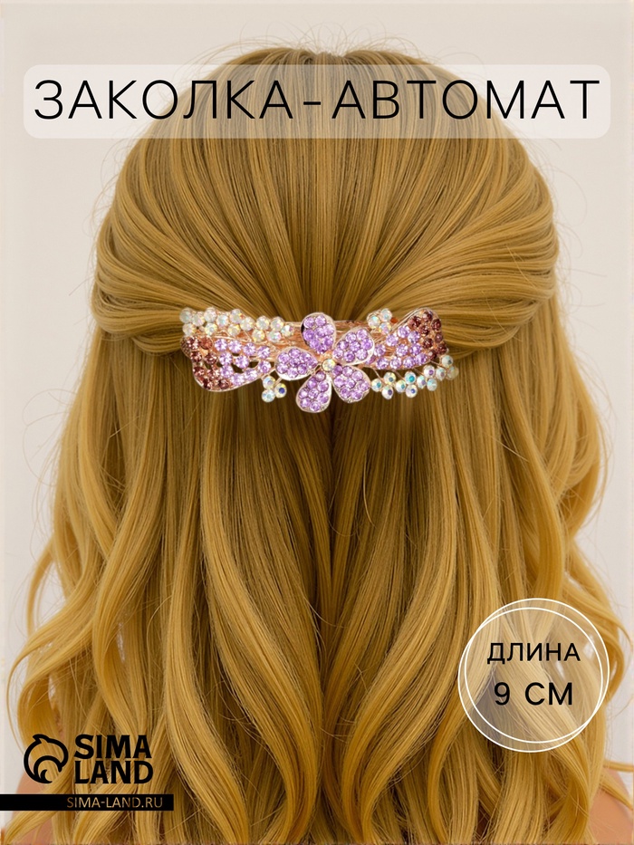 Элегантная сиреневая заколка с автоматическим механизмом станет изысканным акцентом в вашем образе. Эта изящная «Флора» длиной в 9 см подходит для женщин, которые ценят стиль и качество в каждой детали.