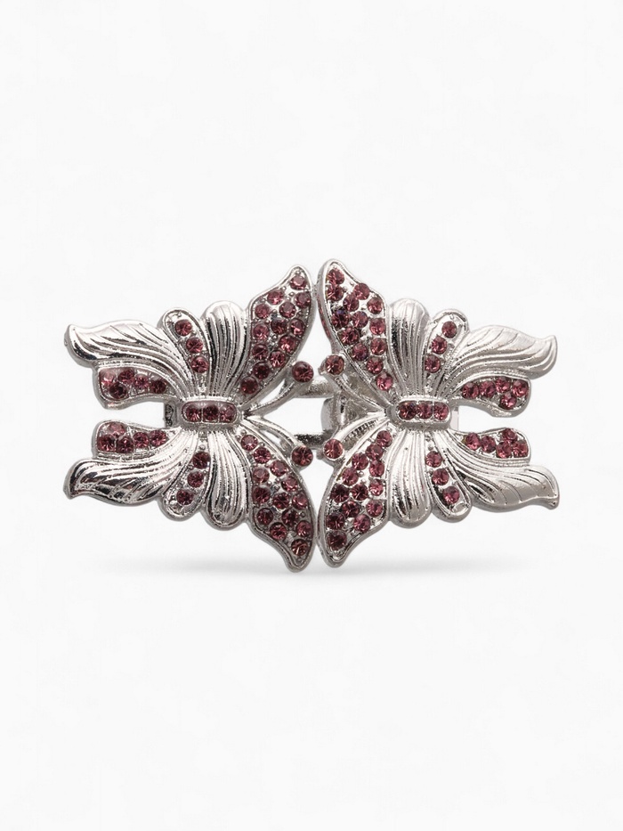 Зажим для кардигана «Бабочки», цвет розовый в серебре