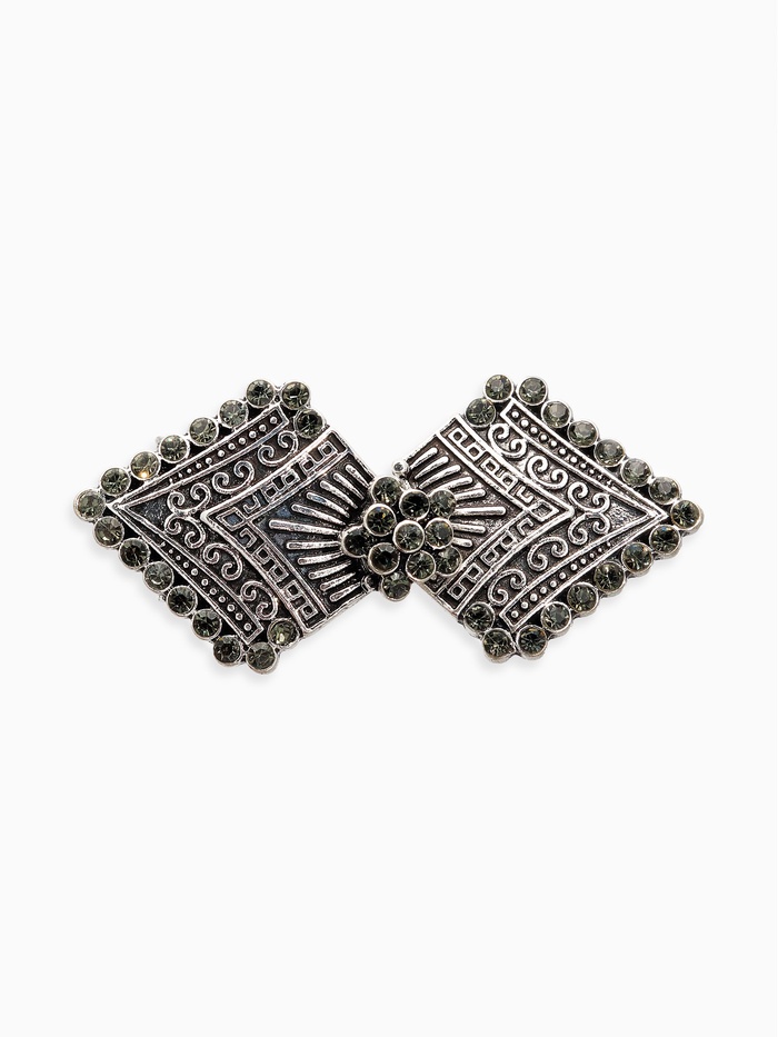 Перед вами замечательный аксессуар, достойный украсить самый изысканный образ — зажим для кардигана с романтичным орнаментом ромбов. Выполненный в серых тонах с элементами блестящей инкрустации, он вызывает ассоциации с классическими моделями прошлого века, оживляет классические наряды и дарит новые акценты в привычных вещах.